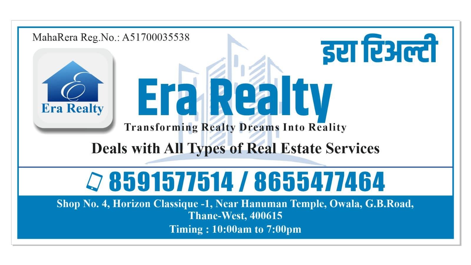Founded in 2021, Era Realty is a growing and trusted real estate consultancy committed to helping clients make smart property decisions in Thane and surrounding areas.
